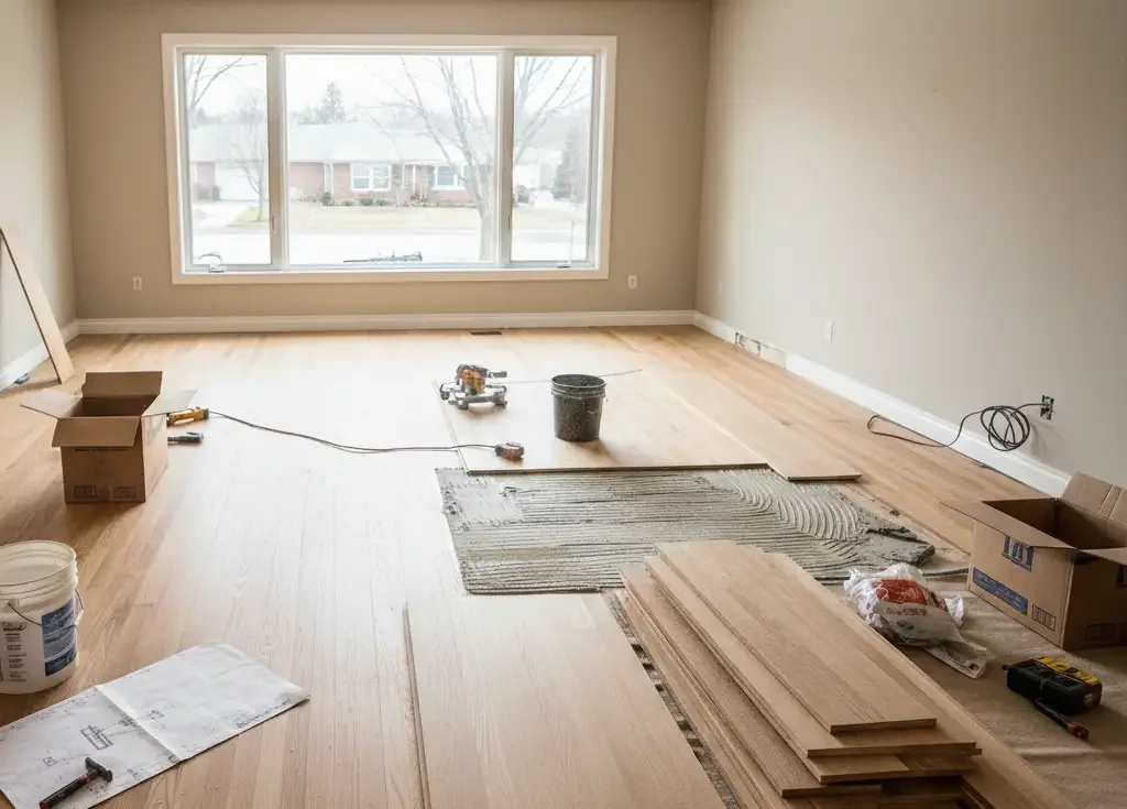 Installing new wood floors often involves more than laying boards. This may include removing existing flooring, preparing or leveling the subfloor, installing hardwood flooring properly spaced and secured, and adjusting trim, doors, and transitions.